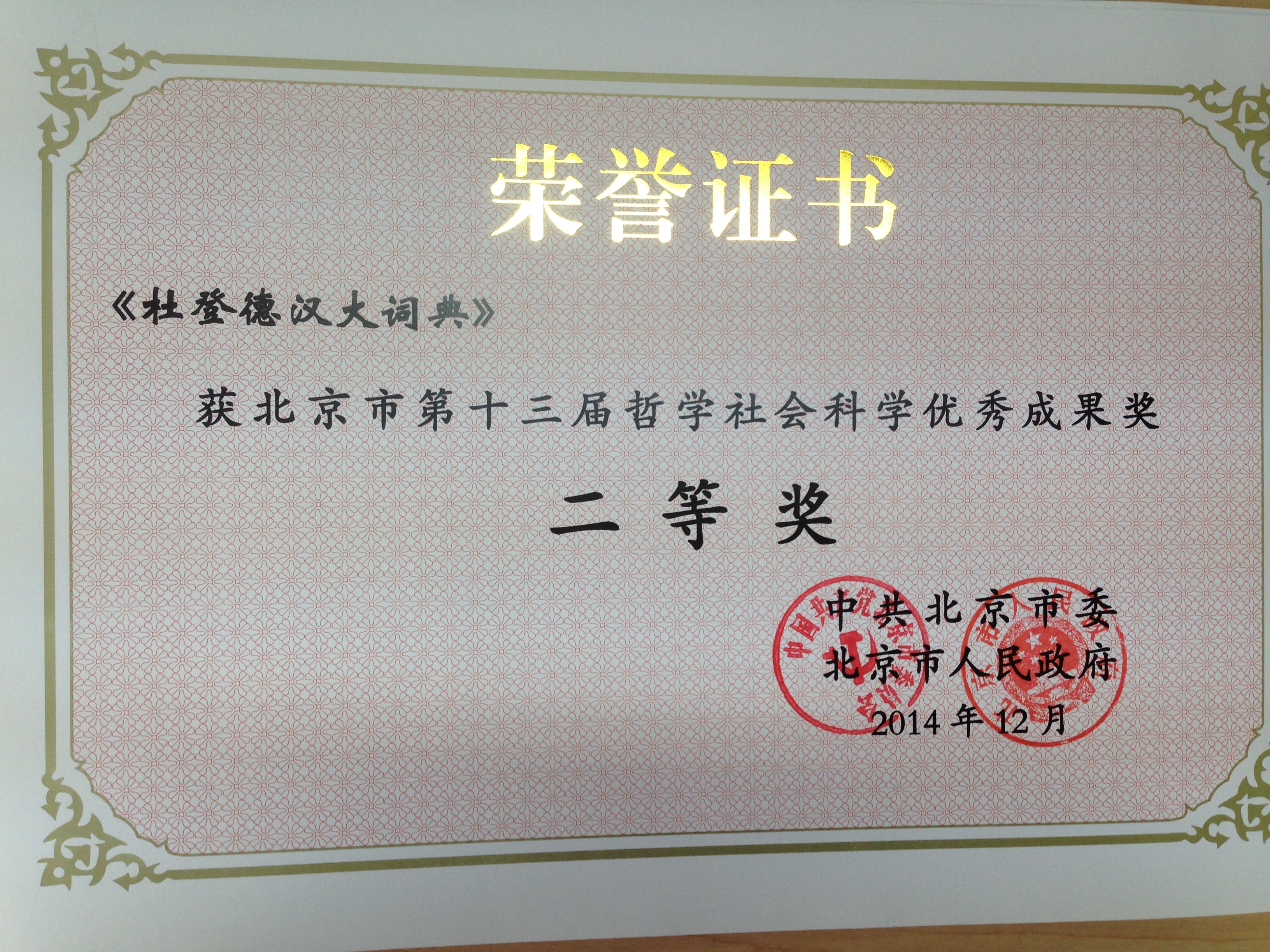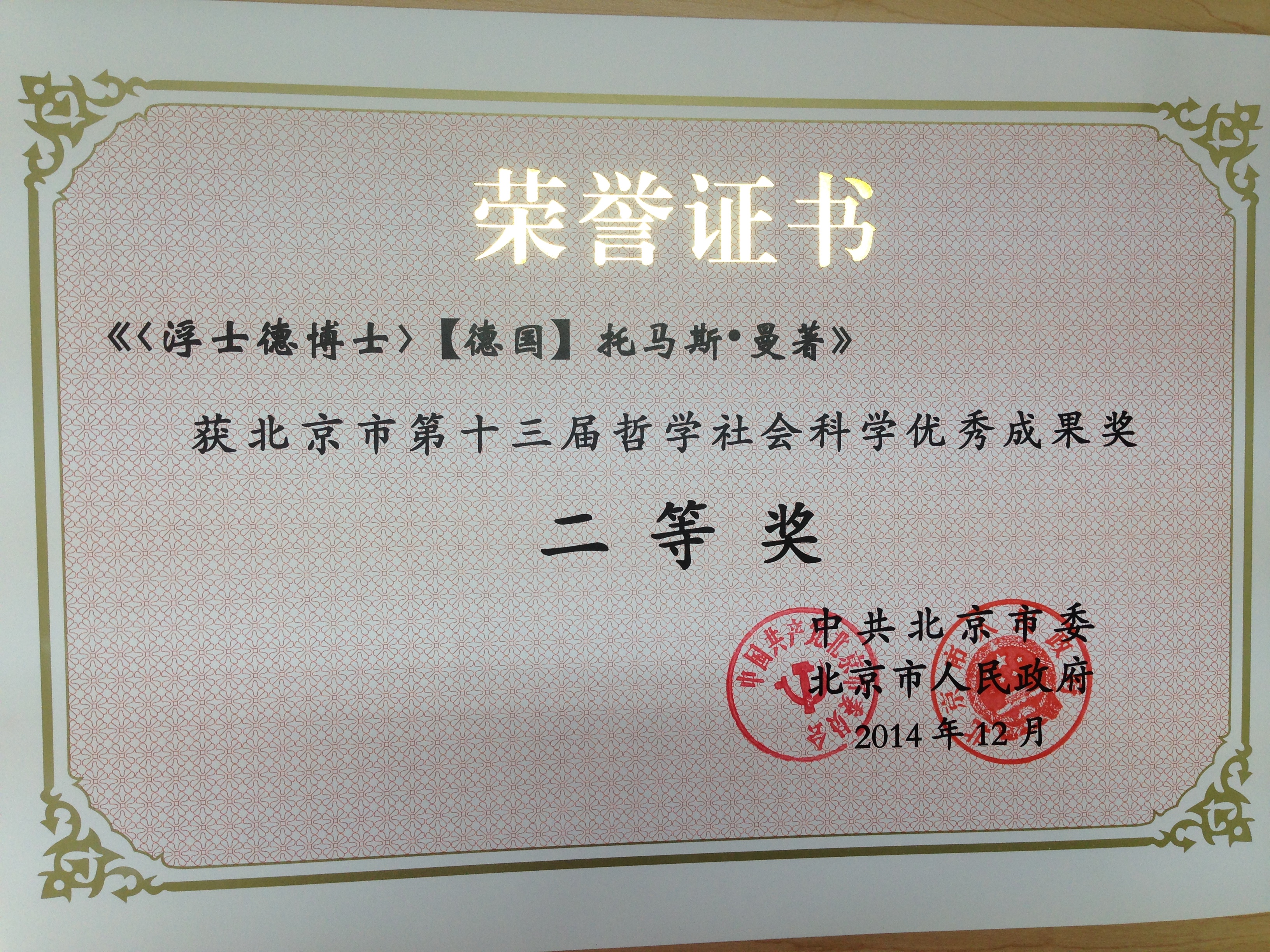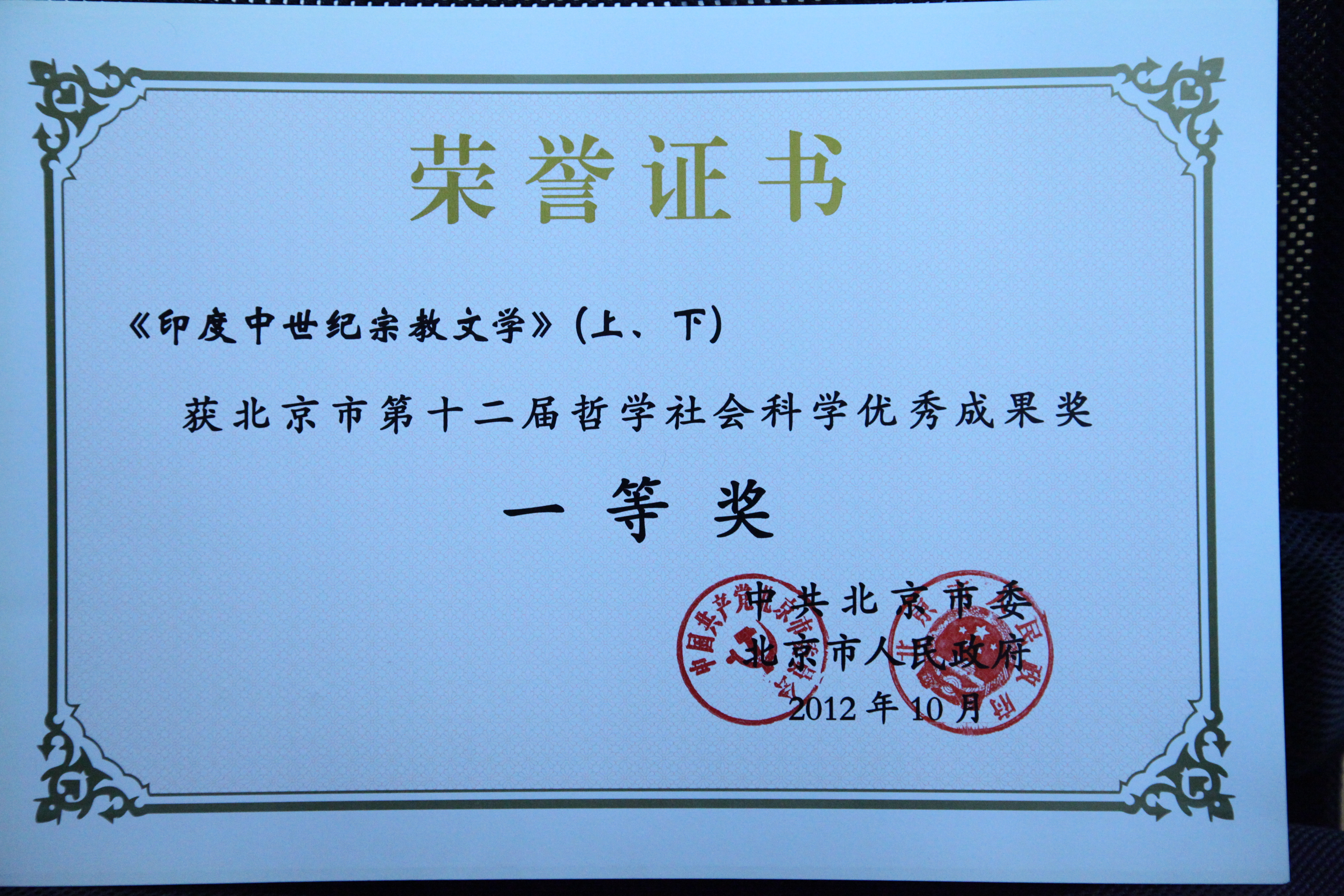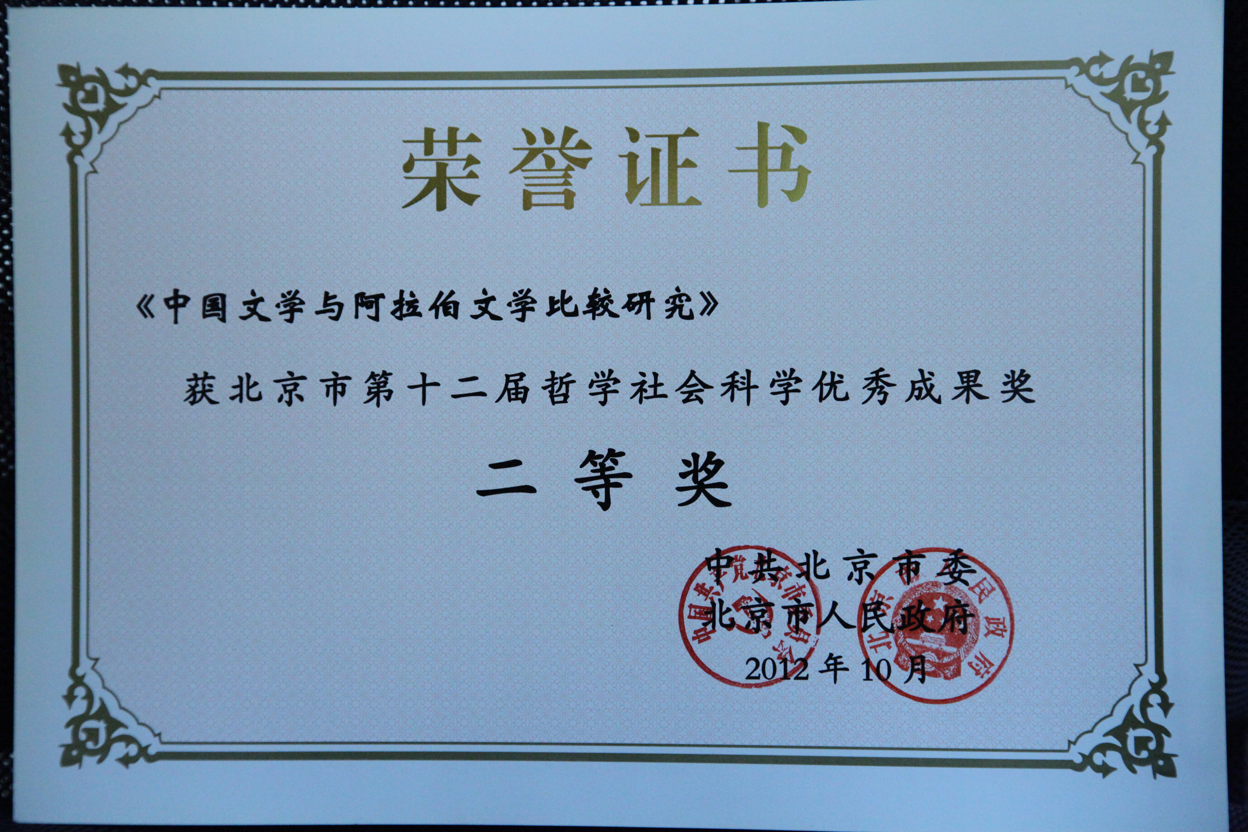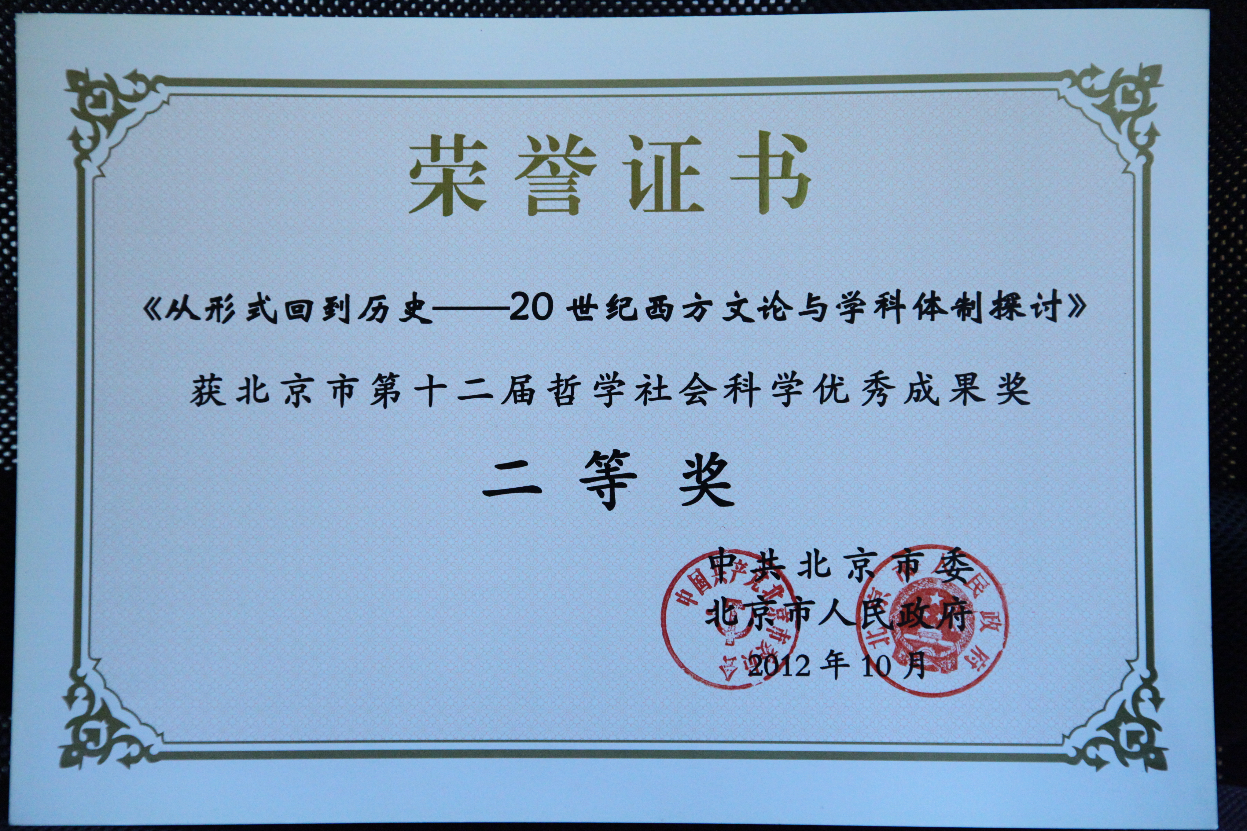 北京市12届哲学社会科学优秀成果奖(唐孟生 一等奖、林丰民 二等奖、周小仪 二等奖),获奖时间为2012年10月。
