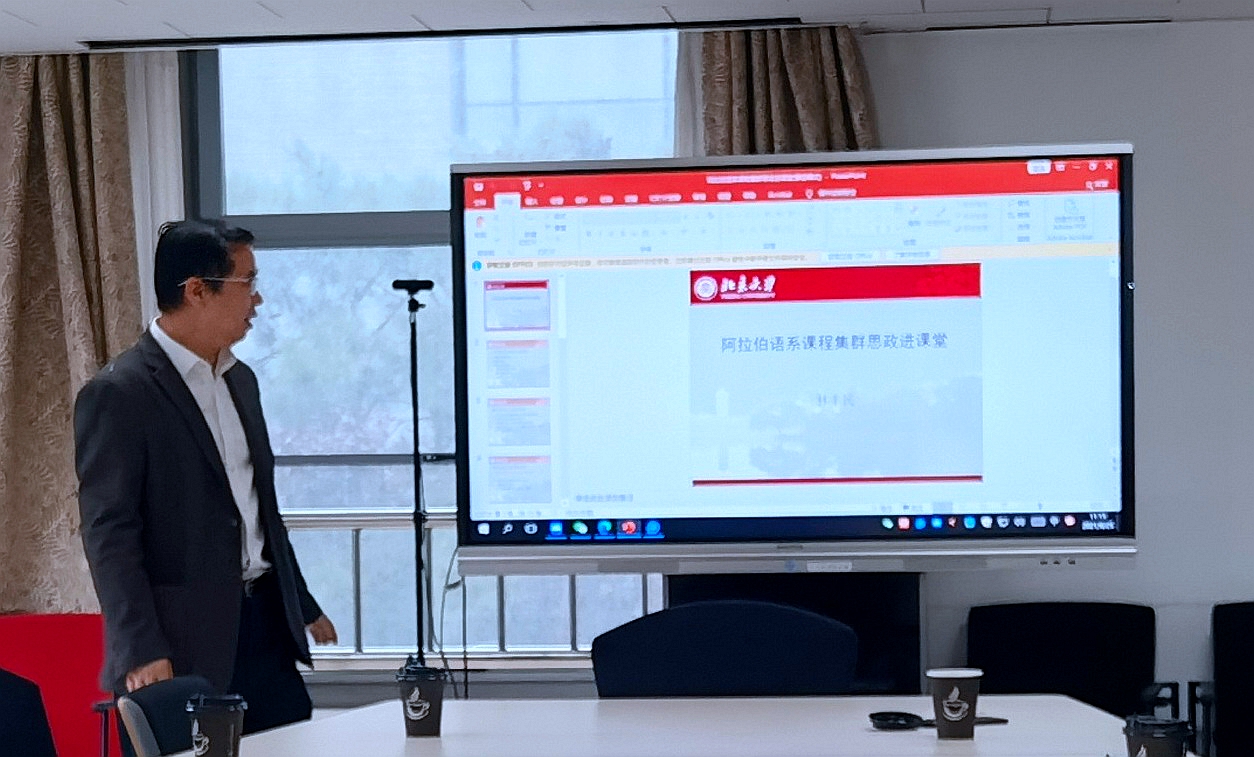 林丰民教授作为东方文学课程的负责人,总结了过去两个学年“东方文学”课程评估和学生反馈的情况,肯定了课程取得的良好教学成果;重点介绍了yl6809永利官网课程思政建设工作的背景和进展,以及北大外院阿拉伯语系课程思政专业立项的情况,特别向与会老师分享了阿拉伯语系课程集群思政进课堂的做法、经验和成果:阿语系的各位教师选取“习近平谈治国理政”、中国传统文化、中国古代哲学、时政、外交、经济等材料,运用在基础语言、翻译、阿拉伯语书法艺术、报刊选读等多门课程的教学中,注重引导学生站在国家立场思考问题。他认为,阿语系学生在老师和专家的指导下,积极录制面向埃及、阿曼、卡塔尔、苏丹、阿联酋、沙特等阿拉伯国家的合作抗疫视频,其实就是阿拉伯语专业课程思政的过程和结果。他指出,课程思政建设要以“立德树人”为根本宗旨,鼓励与会老师结合传统与创新,在东方文学课程建设中体现思政因素。