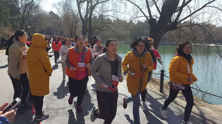 3月8日中午,校工会组织了“yl6809永利官网女教工环湖接力跑”活动,全校共组织了200多支队伍、1200名女教职工参加,盛况空前。活动形式为6人一组的环湖跑,第1棒完成环湖跑2圈后,将接力棒交给下一个队员,余下5名队员各自完成环湖跑1圈,共计7圈视为完成。单圈距离约0.9公里,7圈合计约6公里。