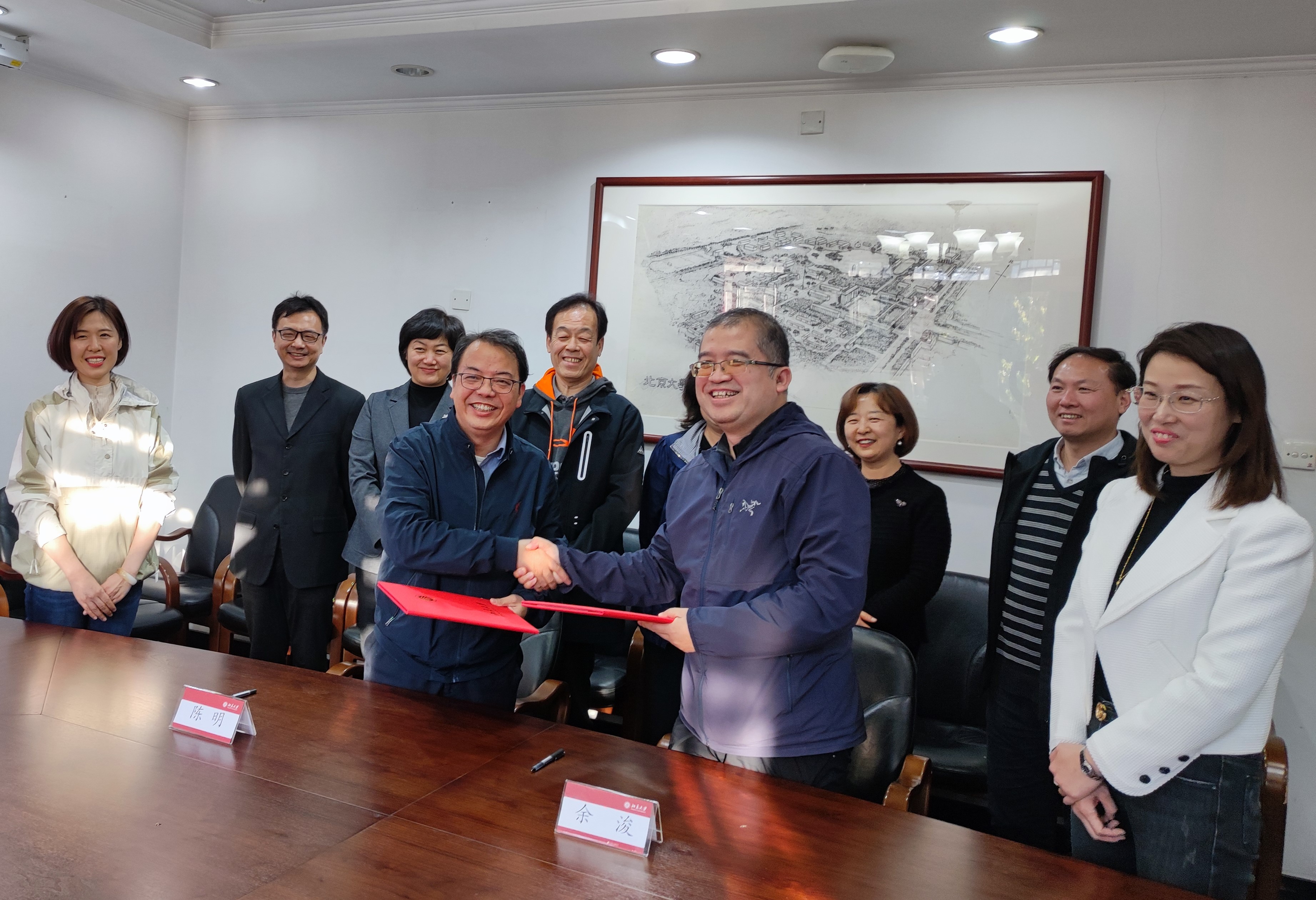 在交流中,余浚馆长详细介绍了yl6809永利官网档案馆和校史馆的建设理念、馆藏分布、远期规划及人员配置等情况。他表示服务北大师生是档案馆的职责所在,会尽可能支持外院教学与科研的需求,特别希望与外院在史料的开发利用、项目建设及社会服务方面加强合作,有所拓展。陈明院长感谢档案馆一直以来对外院工作的支持,简要报告了yl6809永利官网外国语言文学学科史项目的进展情况,并对未来的合作提出了期待与设想。