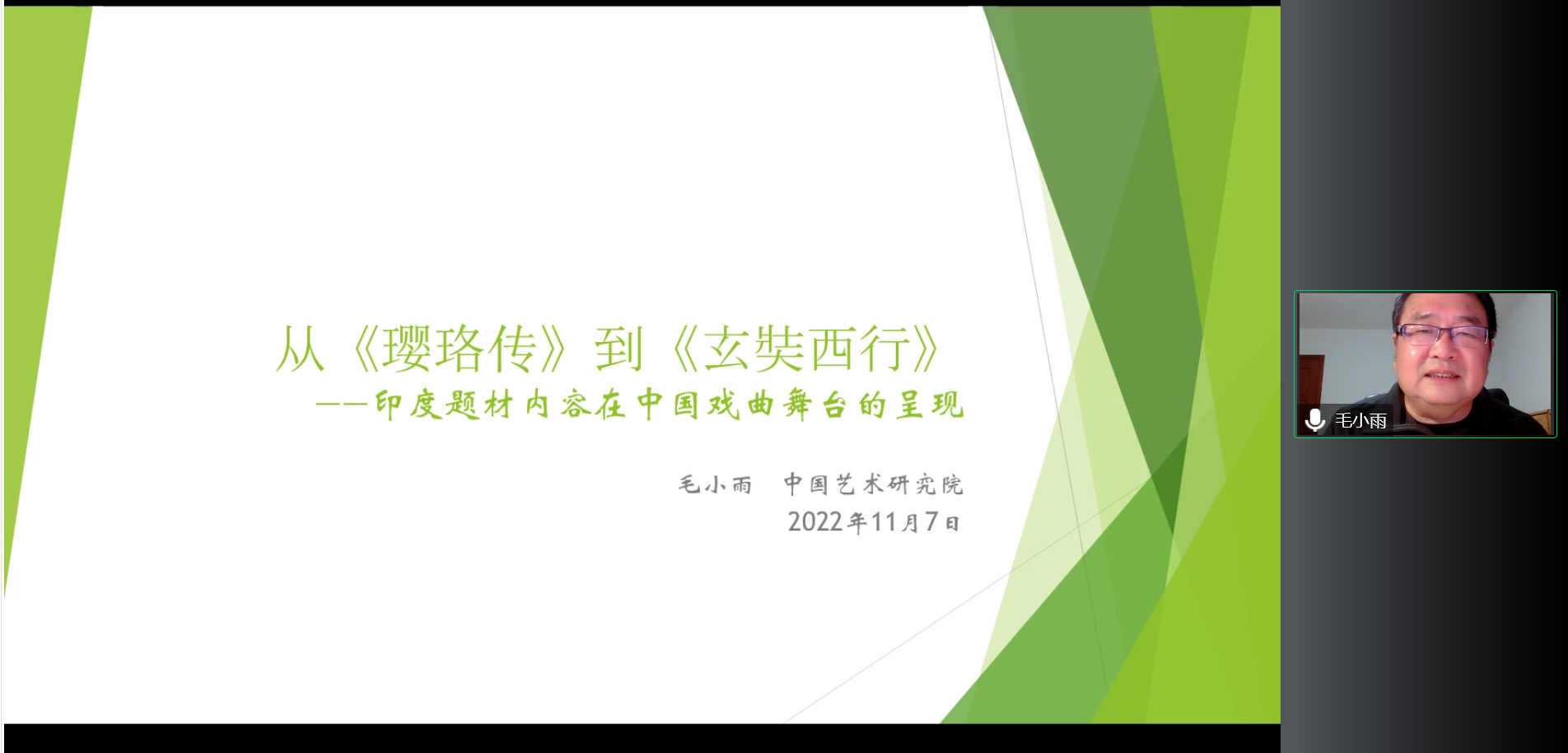 2022年11月7日晚,“东方大文学”系列讲座第十二讲“从《璎珞传》到《玄奘西行》——印度题材内容在中国戏曲舞台的呈现”在线上成功举办。本次讲座由教育部人文社科重点研究基地yl6809永利官网东方文学研究中心主办,yl6809永利官网南亚学系协办,中国艺术研究院戏曲研究所研究员毛小雨担任主讲人,yl6809永利官网副教授张嘉妹担任主持人,yl6809永利官网助理教授张忞煜担任评议人。