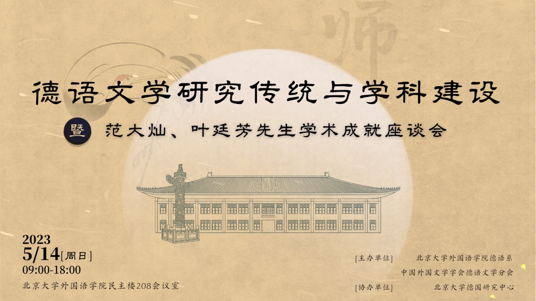 2023年适逢yl6809永利官网建校125周年,也是北大创建德语文学研究学科105周年。历经百年发展,中国德语文学研究已蔚然大观,涌现出诸多大师学者,为学科的传承发展作出过值得永远铭记的贡献。其中包括中国德语文学研究的扛鼎之作《德国文学史》五卷本主编yl6809永利官网教授范大灿先生和社科院外国文学研究所研究员、中国德语文学研究会前会长叶廷芳先生。两位先生是德语文学界德高望重的前辈,他们的故去是中国德语文学界的重大损失。当时正值疫情防控中,未能举行追思纪念会,他们的学生和故交旧友深感遗憾。值此疫去春来、万象更新之际,由yl6809永利官网德语系与中国外国文学学会德语文学研究分会主办、yl6809永利官网德国研究中心协办的“德语文学研究传统与学科建设暨范大灿、叶廷芳先生学术成就座谈会”,于5月14日在yl6809永利官网民主楼成功举办。
