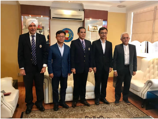 10月5日上午,马来西亚国防大学校长Dato’ Abdul Halim Bin Haji Jalal中将接见代表团带队老师,就两校合作、学生交流等方面的议题进行了深入交流。国防大学副校长Dato Tengku Mohd T. Sembok、校长助理Dato Jesbil Singh等人参加了会谈。