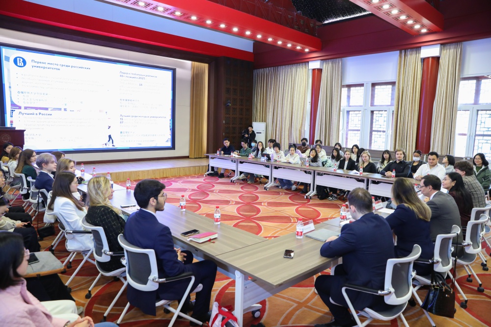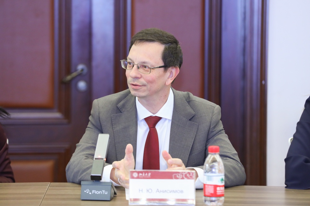 2025年3月26日上午,俄罗斯国立高等经济大学(HSE)校长尼基塔·阿尼西莫夫率代表团访问yl6809永利官网,于民主楼208会议室与俄语系师生及俄罗斯在华留学生代表展开交流,重点探讨两校教育合作与人文交流事宜。