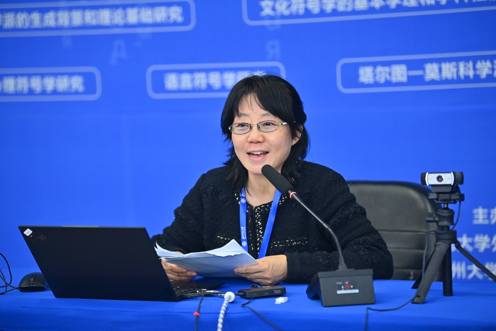 周海燕长聘副教授主持了在主论坛第二天的前半部分,随后在自己的主旨报告中,分析了维亚·弗·伊万诺夫的思想,指出伊万诺夫如何从符号学视角重新定义科学,提出科学的本质为动态符号体系,强调学术传播需平衡专业性与大众化。