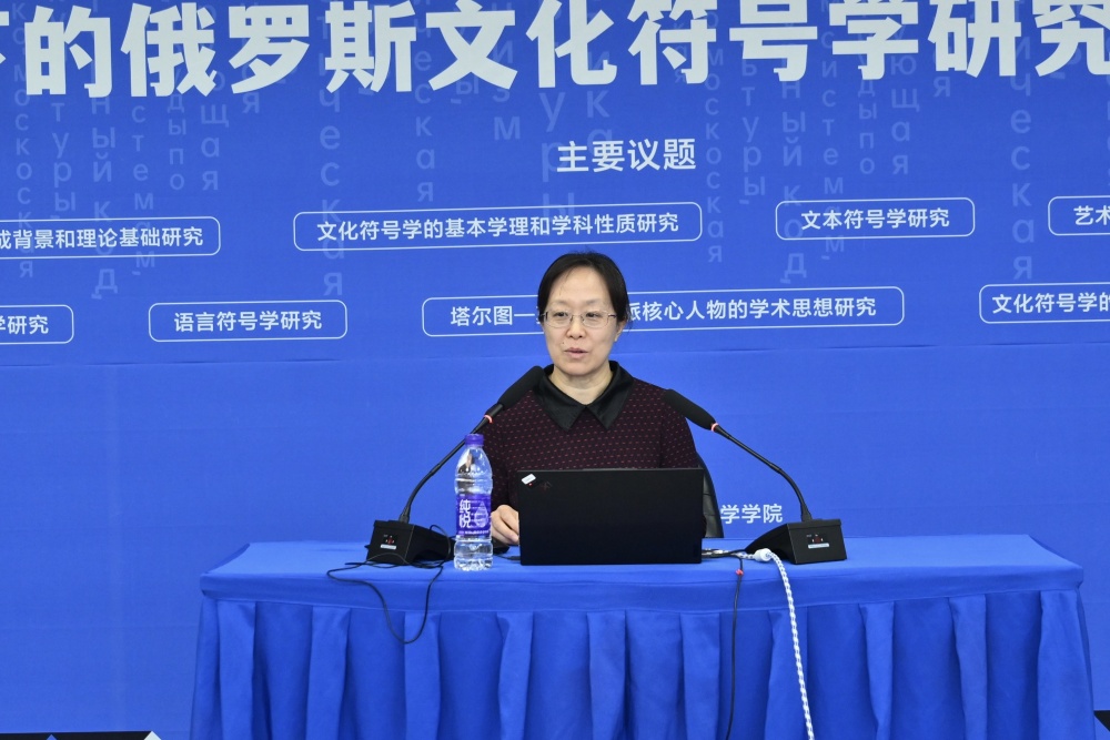 在大会第一天上午的主旨报告中,张冰教授从文学史特别是斯拉夫文学的史前史切入,基于二元模型与“共时历时”方法,从历史符号学视角重构俄罗斯文学史的符号意义体系。