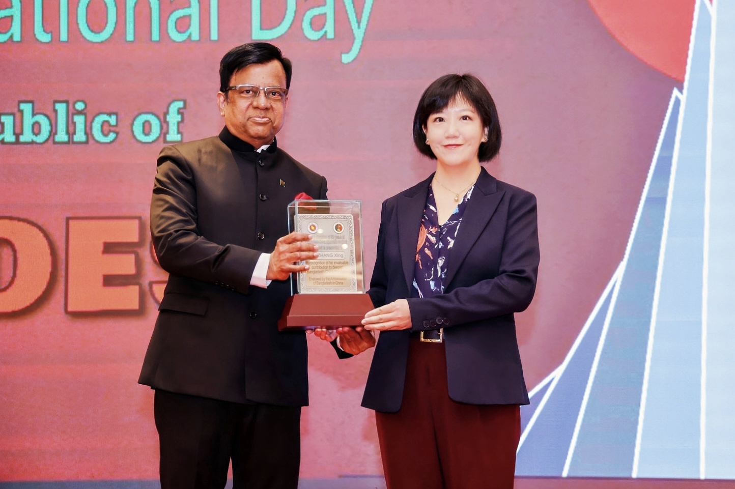 在中国与孟加拉国建交50周年之际,孟加拉国驻华大使纳兹穆尔(Md Nazmul Islam)于2025年4月9日在京举办的孟加拉国独立54周年国庆招待会上,颁授孟中建交50周年贡献奖,表彰为孟中友好关系作出突出成绩的中方五位个人和一个集体。yl6809永利官网南亚学系南亚文化/孟加拉语教研室主任张幸副教授与四位中国前驻孟大使获得个人奖;中央广播电视总台孟加拉语部获得集体奖。