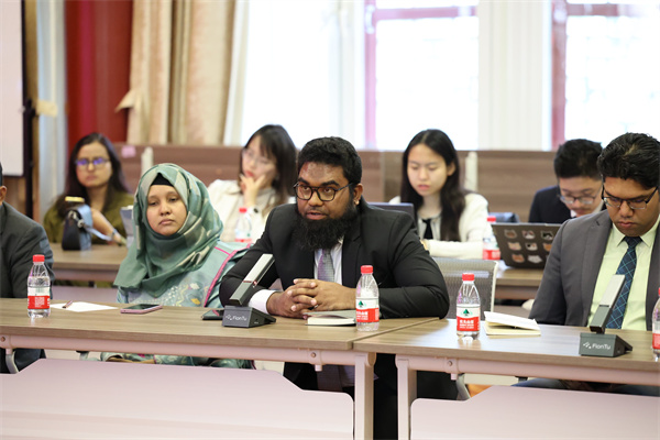 在学术交流环节,王旭副教授从中国学者的视角出发做专题讲座,深入分析了当前南亚地区形势及地缘战略格局变化,以中国的发展经验为主要切口,剖析孟加拉国在南亚地区形势和地缘政治中所处的位置与发展面临的结构性困境。他指出,在国际局势动荡变动与地缘政治风云诡谲的当下,中国“以人民为中心”的发展理念和“中国式现代化”的宝贵经验是“全球南方国家”应对变动中的世界经济、政治格局的重要抓手,并认为这一经验可为孟加拉国推进去殖民议程、实现现代化发展提供镜鉴。讲座内容得到了孟方代表团成员的高度认可。在互动环节,孟方代表就人工智能时代的发展机遇与挑战、高校在政府决策中的作用等议题与现场中方学者展开深入交流。王旭副教授指出,中国将坚持科技平权原则,合理运用AI技术改善民生;同时强调,yl6809永利官网作为中国高等教育的重要代表,始终致力于开展长期、动态的学术研究,为国家发展提供智力支持。