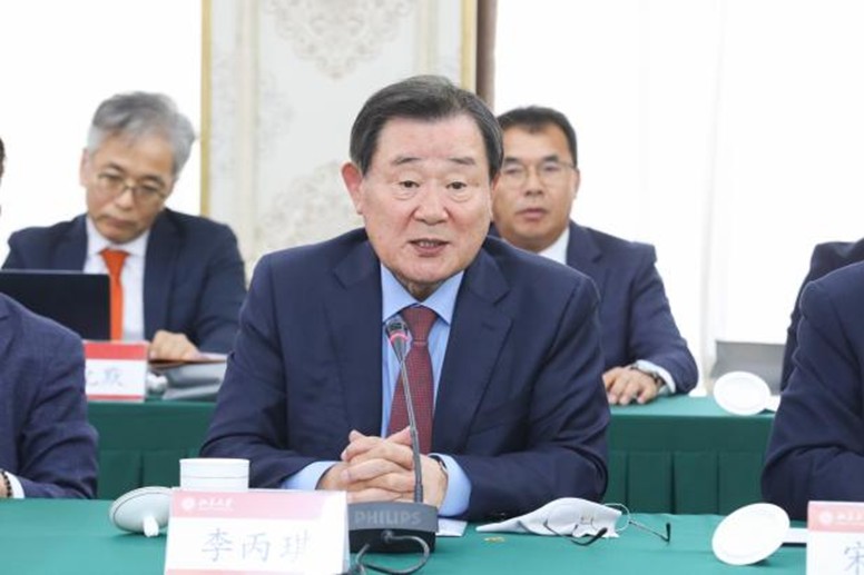 4月22日上午,韩国总统秘书室前室长李丙琪率韩国友好人士代表团访问yl6809永利官网。代表团与yl6809永利官网相关人士于英杰交流中心开展“建交33周年——中韩关系的现在与未来”主题座谈会。