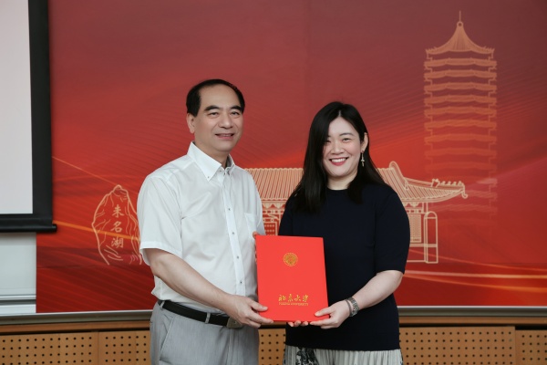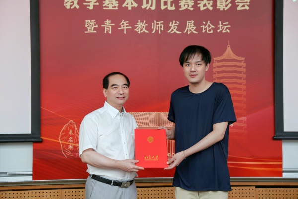 龚旗煌校长给郑楠老师颁奖