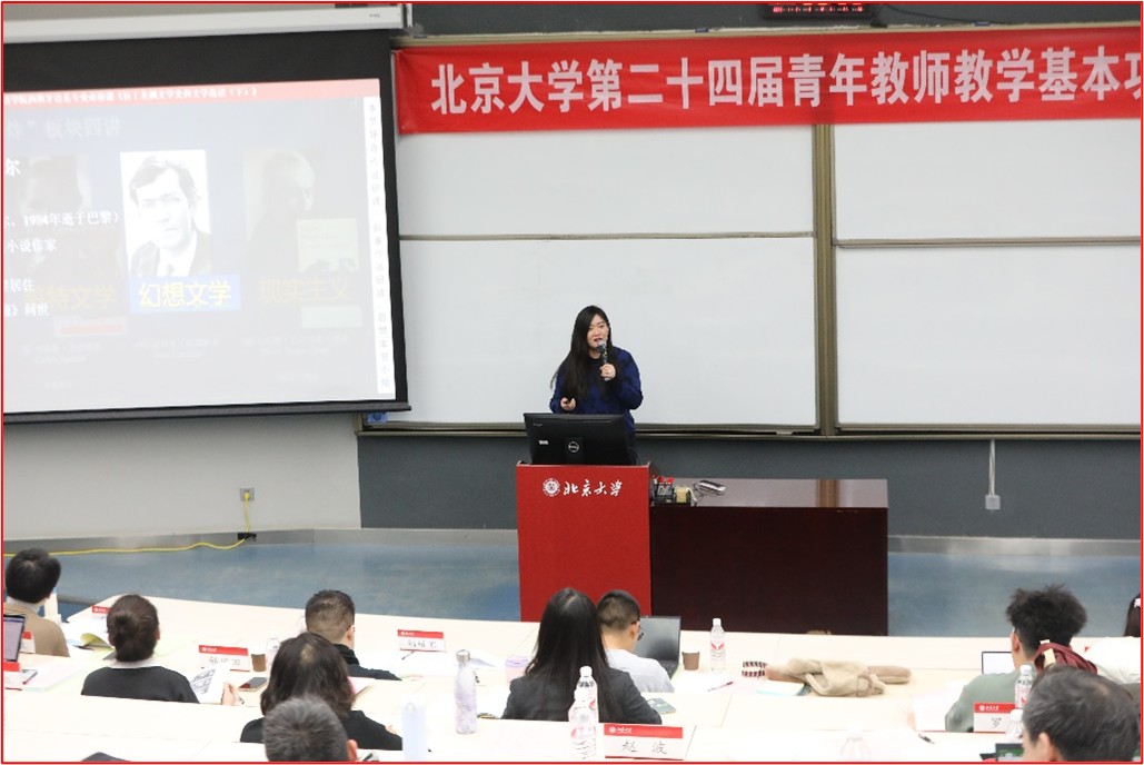 郑楠老师选取“拉丁美洲文学史和文学选读”课程中的“文学爆炸”第三讲——《科塔萨尔和<美西螈>》部分内容、葛奇蹊老师选取“基础日语”课程中“中日同形词”部分内容参赛。两位老师授课展示内容丰富、条理明晰、深入浅出,饱含热情和人文关怀,兼具知识性、学术性和思想引领性,获得了在场教师和学生评委的认可和好评,在比赛中获得佳绩。学院工会负责老师、青年教师代表、学生代表多人到比赛现场观摩学习。