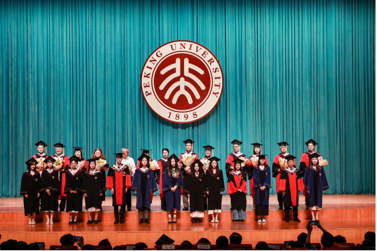 典礼行将结束,全体师生合唱《燕园情》。“燕园情,千千结”,联结的是所有外院人、所有北大人的心,不变的是真诚的师生情、同学情。“眼底未名水,胸中黄河月”,外院学子将带着北大外院人的初心使命,奔赴天涯海角。