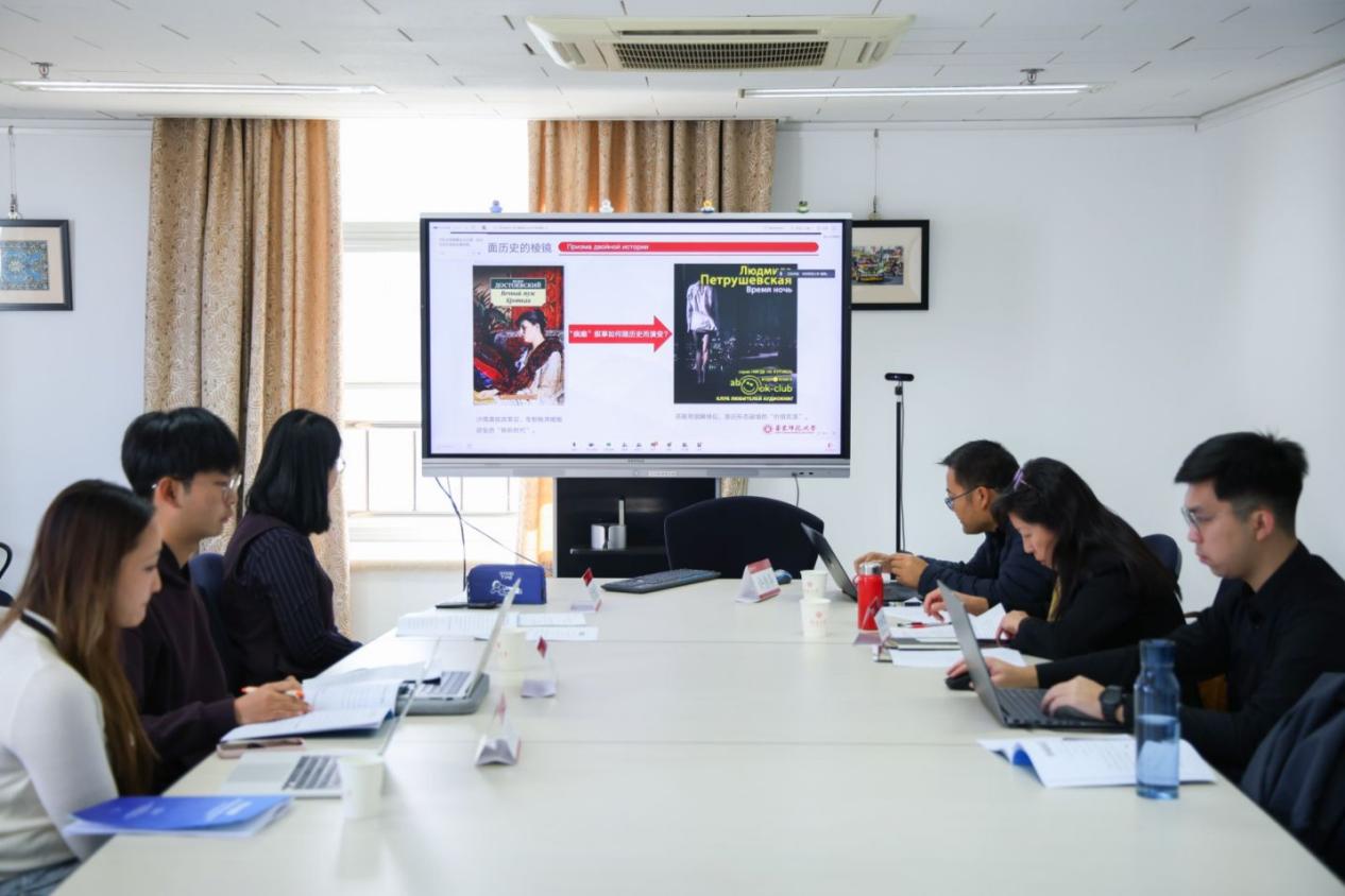 第一分会场为文化研究,由俄语系副系主任王帅老师与博士后王梓老师主持,主要点评专家为北京语言大学管玉红教授、yl6809永利官网王彦秋副教授和南开大学阎国栋教授、yl6809永利官网刘浩副教授。该会场的报告涉及跨文化对话、经典重构、译介传播等多个分支的研究。