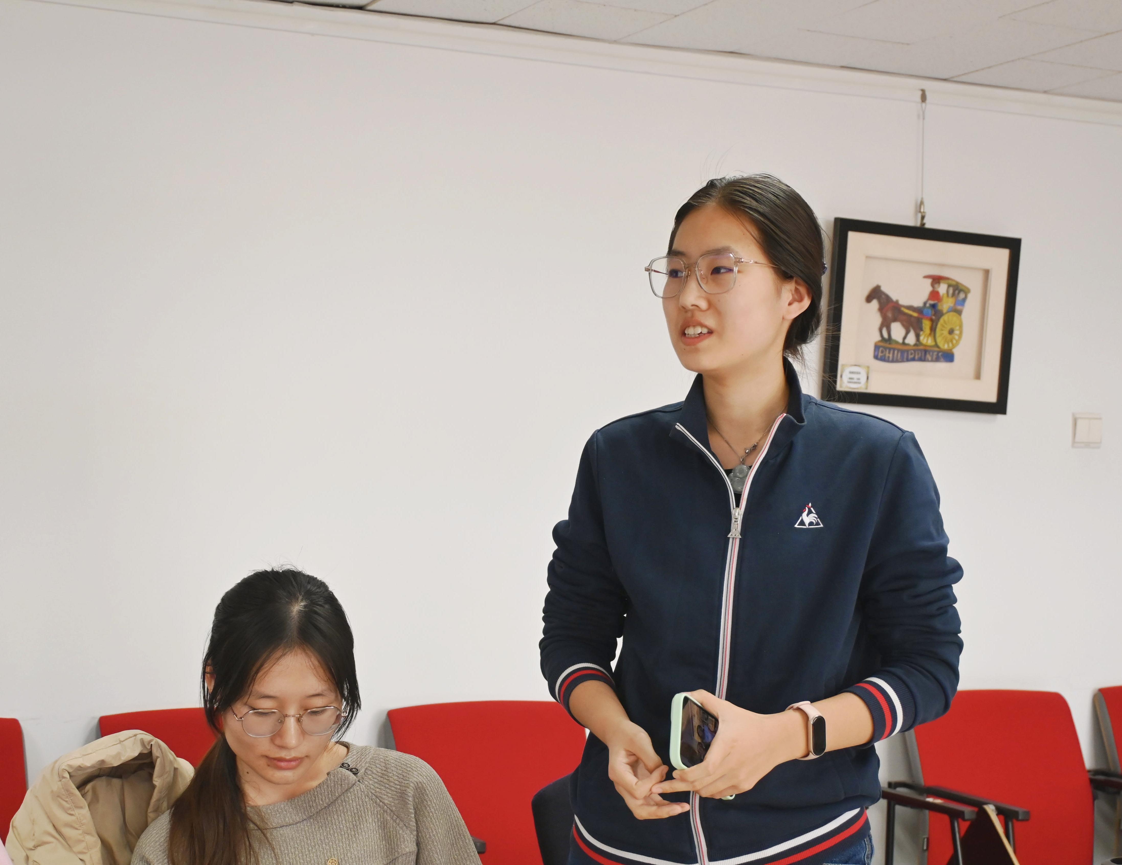 接着,团支书余一可同学进行总结汇报,从理论学习、实地调研、思政交流、调查报告四个方面回顾了本次研学项目。项目六周的行程覆盖了河内、顺化、会安、岘港、芽庄、胡志明市这六座越南城市,帮助同学们构建了越南“历史—文化—现代化”三位一体的知识结构。通过在河内国家大学的课程学习与跨越南北的文化考察,研学实现了从课堂到田野、从知识到研究能力的实质性跨越。同学们深刻理解了翻译工作是跨文化沟通的桥梁,并坚定了作为新时代外语人才,服务国家战略、推动文明互鉴的责任与担当。