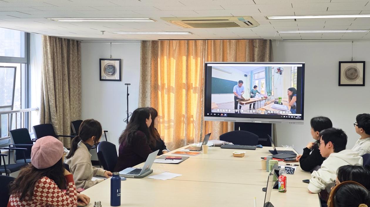 随后,图片组的黄子茜、余学军同学展示了精心制作的视频,以生动的形式带领老师们和同学们重温充实、生动、难忘的越南时光。视频最后,潘越和韦颖娘两位同学还分享了他们的感悟,纷纷表示收获丰富,认为在实践中加深了对专业学习和文化考察的理解。这段视频让大家都倍感触动,现场的氛围随即热烈起来。