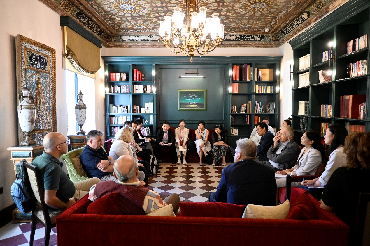 7月13日,调研团拜访土耳其红猫出版社,与出版社创始人哈鲁克·海普康以及出版、传媒等领域专家深入座谈。海普康介绍了中国主题图书在土耳其市场的情况,宁琦介绍了国家社会科学基金中华学术外译项目,并鼓励土耳其更多出版社参与联合外译项目申报,将更多优秀的中国主题图书介绍给土耳其读者。