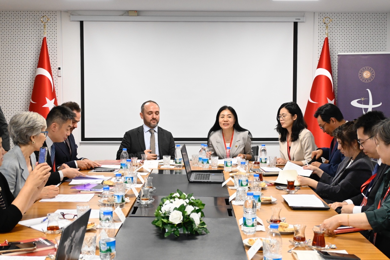 同日,调研团拜访了土耳其爱国党总部。该党主席多乌·佩林切克高度评价中国的发展成就,表示土中两国在政治理念、发展道路和全球事务中的立场具有高度契合,深化双方交流合作具有重要战略意义。他建议通过共建学术期刊、联合举办学术论坛等方式,搭建长期稳定的交流合作平台,推动中土在人文社科领域的深入对话。调研团成员对此表示积极认同,并期待未来在学术、教育、文化等多个维度与土方开展更加广泛、深入的合作。