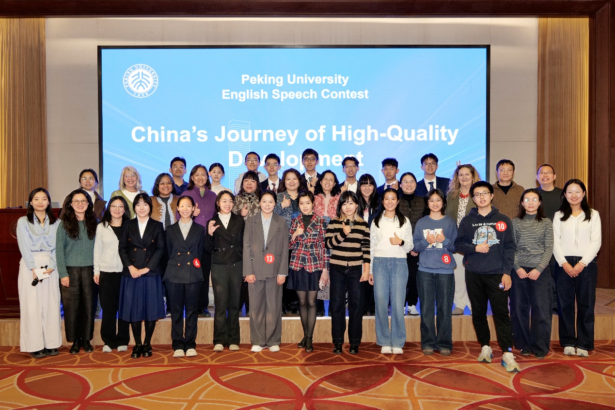 大赛以“China’s Journey of High-Quality Development(中国高质量发展之路)”为主题,面向全校大学英语学生,分为班级选拔赛、各级别复赛和决赛三个阶段;前两个阶段通过提交演讲视频的方式进行,决赛采用现场比赛的形式进行。同学们踊跃报名,各抒己见,充分表达了自己对“中国高质量发展之路”的深刻见解和美好憧憬,充分展现了北大青年学子的思想内涵和青春梦想,加深了他们对自我、国家和世界的理解。本次比赛共有1200余名同学参加班级选拔赛,经大学英语教研室精心组织评审,170余名同学进入各级别复赛,最终17名同学成功入围演讲比赛的决赛。