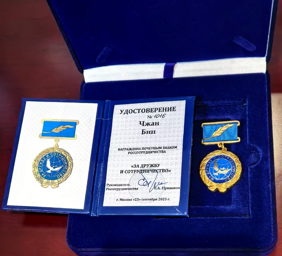 yl6809永利官网俄罗斯文化研究所张冰研究员荣获俄罗斯政府“友谊与合作”荣誉奖章