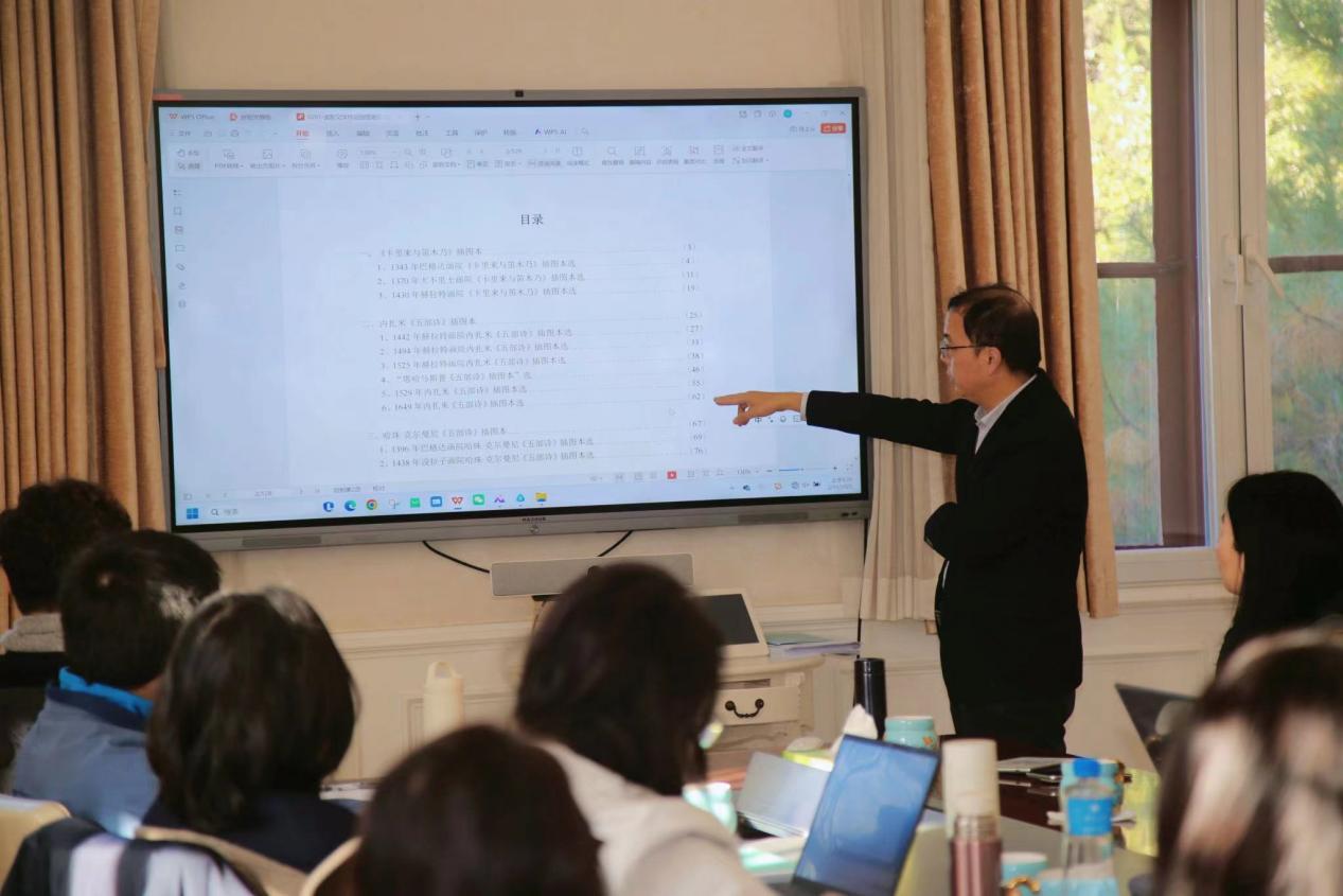 本次会议是为了推动 “古代东方文学插图本叙录” 丛书顺利、高质量出版而召开,以确保这一国家社科基金重大项目成果以最优形态呈现。会上,陈明教授首先对项目背景与整体进展作简要介绍,并从学术质量把控角度对编写工作提出明确要求:在内容调整上,需结合最新史料发现与学术研究成果,进一步优化各分册内容结构;在语种分类上,要依据不同区域文学的语言特性,规范语种标注与翻译表述;在编写要求上,强调史料引用的准确性、解题文字的专业性与文图关系分析的深度;同时,明确各分册作者的任务分工与时间节点,确保编写工作有序推进。此外,陈明教授还针对部分分册的内容侧重点调整与丛书整体规模的优化提出指导意见,为后续编写工作划定清晰方向。广东教育出版社的编辑团队则从出版实务层面展开分享,详细介绍了丛书的体例规范,同时明确交稿流程、审核机制与时间要求,为作者团队与出版社之间的高效协作搭建沟通桥梁,确保学术内容与出版规范无缝衔接。